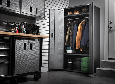 All-in-one, versatile storage solutions. Tough features like welded steel construction and fully-adjustable shelves meet modern design with recessed handles, soft-close doors and auto-return drawers to create a complete garage cabinet system.