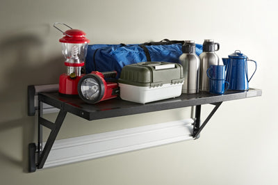 Wall-mounted shelves are easy to hang and reposition on your Gladiator® wall system, keeping your gear protected and easy to access.