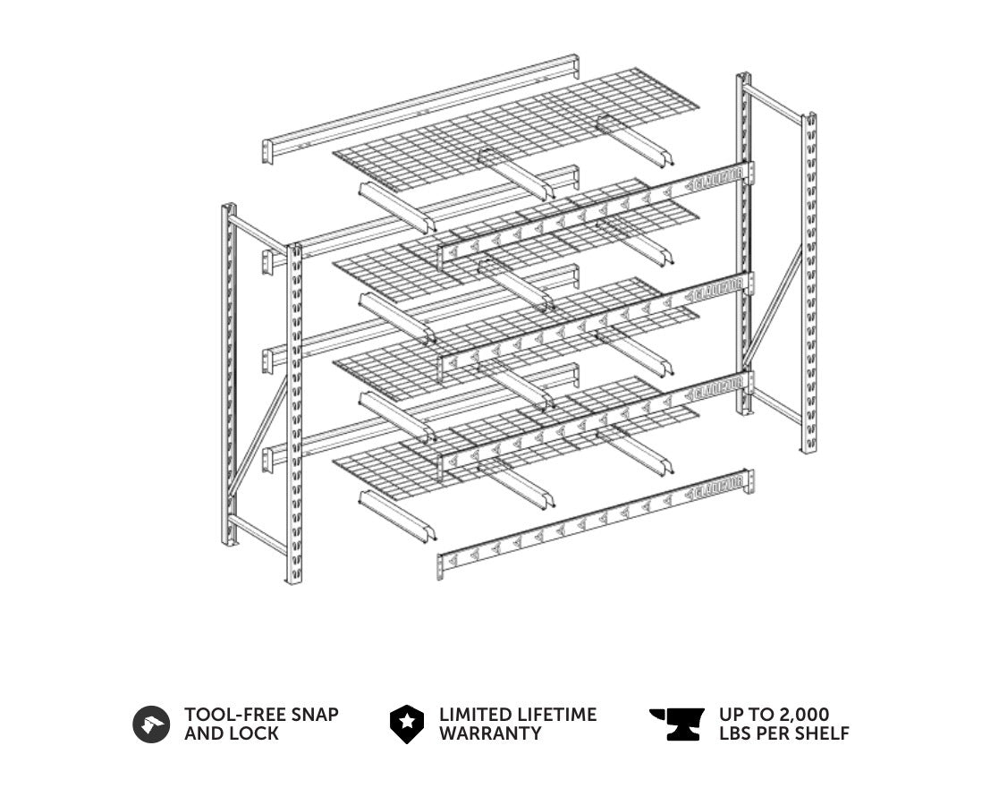 This innovative technology allows for one person to assemble each freestanding rack quickly and without tools. Easily adjust each shelf to the height you need to store your favorite items.